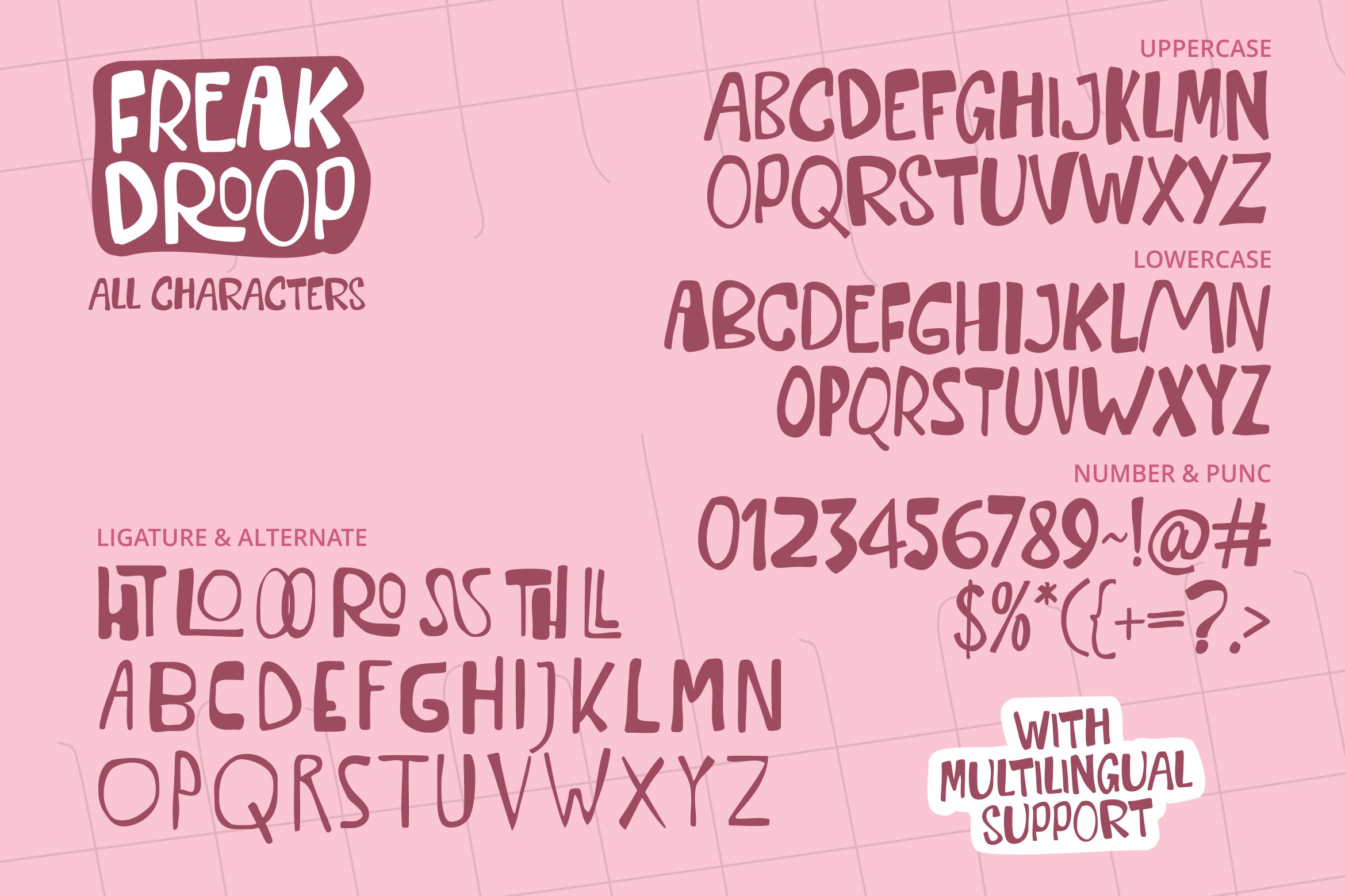 Freak Droop is a quirky, handwritten ugly font crafted for bold and expressive design projects. Perfect for logotypes, watermarks, posters, branding materials, promotions, product packaging, and more — this font brings an intentionally “ugly” charm to every letterform.