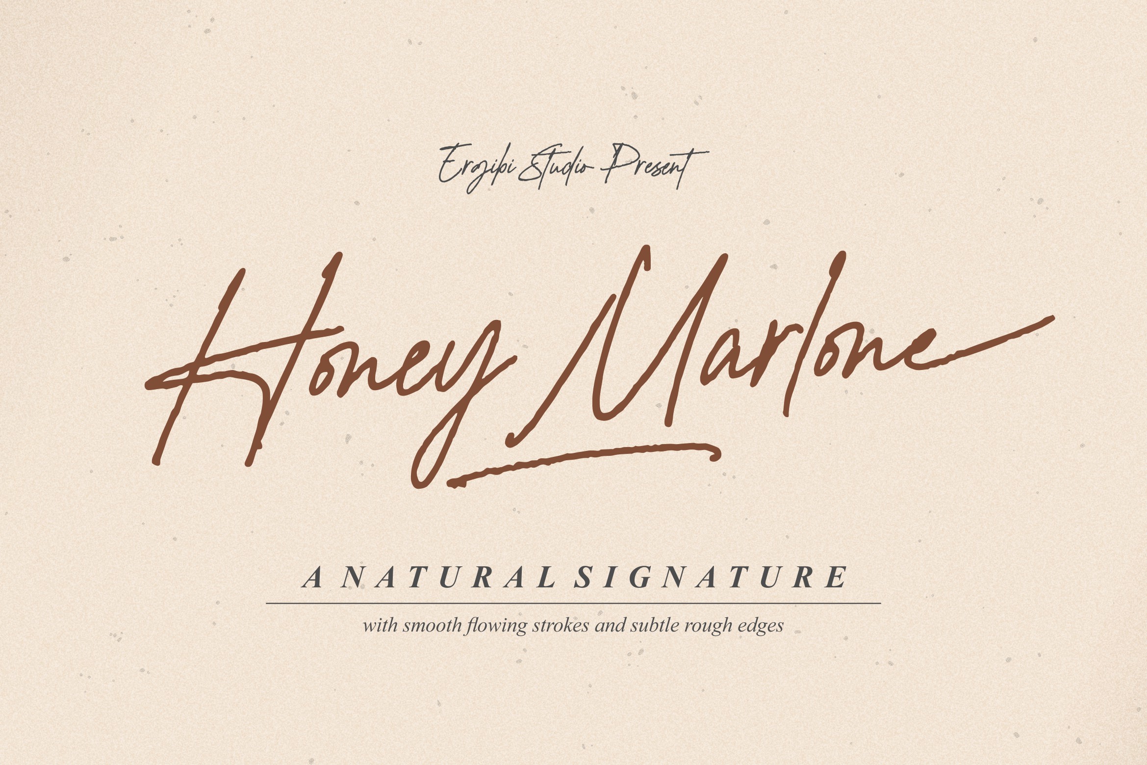 Honey Marlone is a natural handwritten font that radiates warmth and a personal touch, with smooth flowing strokes and subtle rough edges. Each letter feels as if it were written with an ink pen on cozy afternoon paper. Its organic, slightly irregular shapes give it an authentic feel, making it perfect for relaxed themes, personal branding, invitations, quotes, and product packaging that aims to feel friendly and approachable.